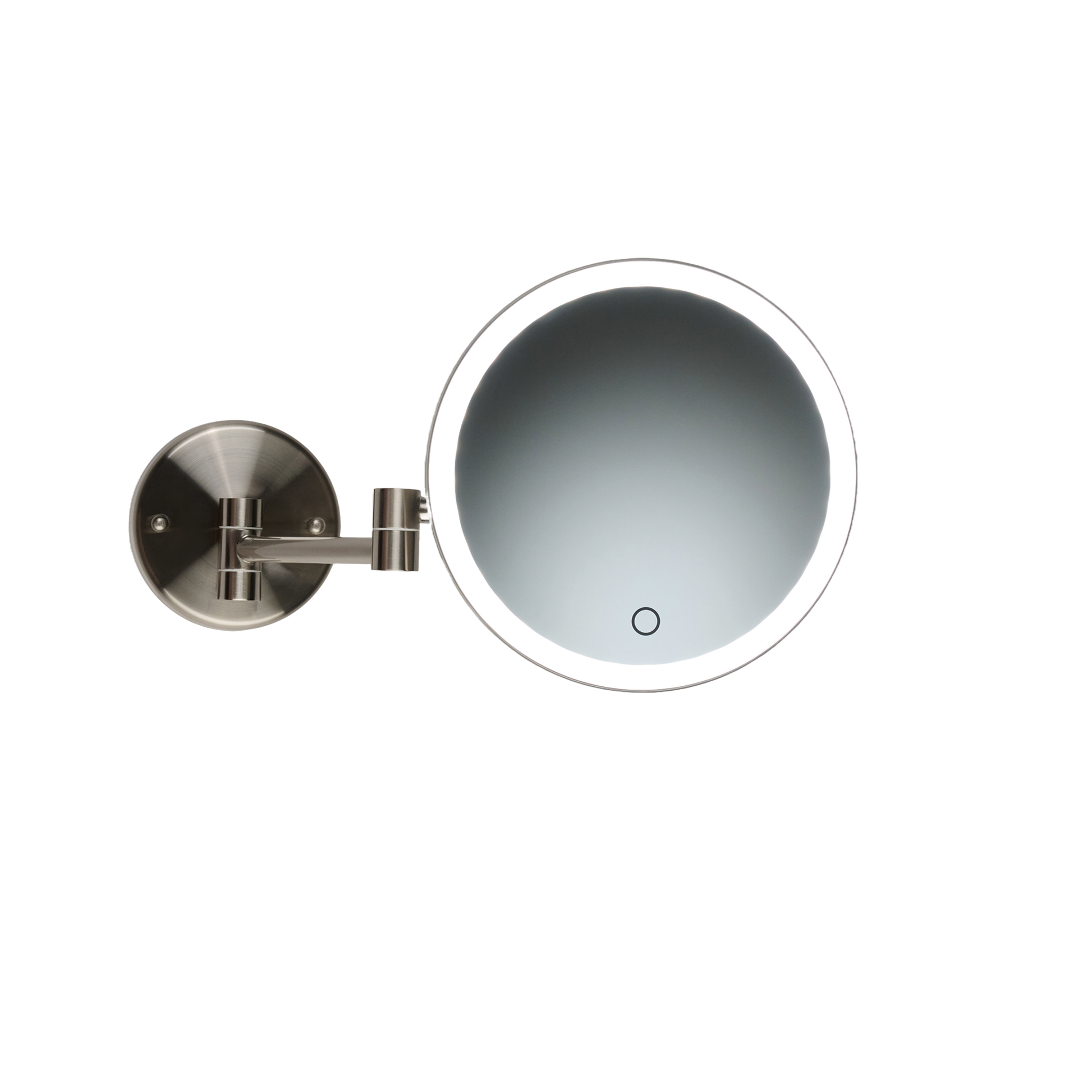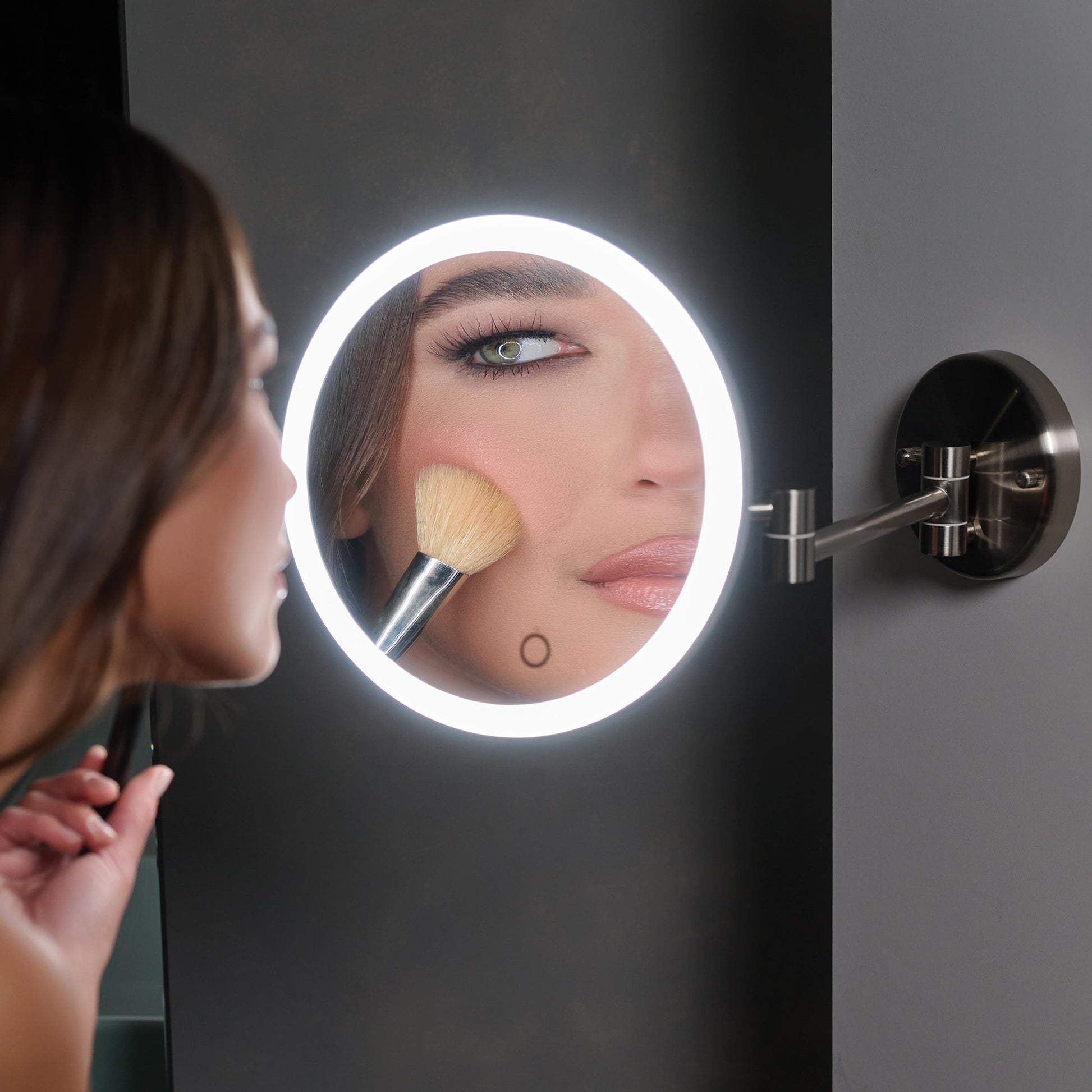 No hardwiring required. This wall mirror can be mounted without the need for nearby electric due to its built-in battery. The rechargeable wall mirror mimics true daylight for accurate color rendition and twice the brightness of typical mirrors.