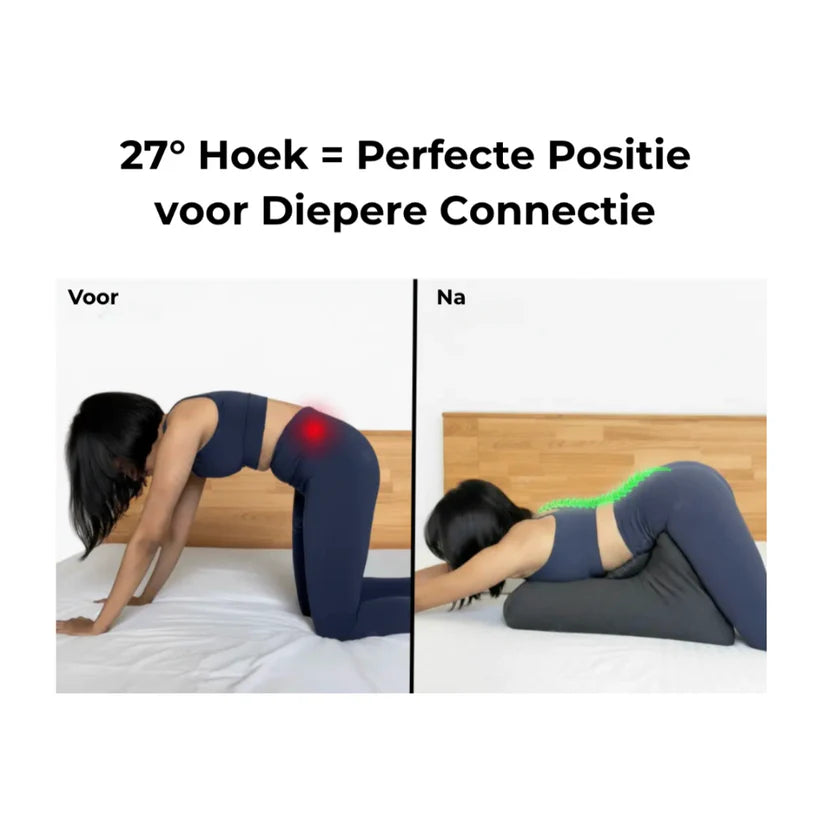 Just imagine: you and your partner, filled with excitement and passion. Sometimes soft and sensual, sometimes wild and intense. Our little secret? We women sometimes secretly slip a pillow under our back or hips—for better support, relaxed legs, and a more intense feeling. But once that pillow slides away or your back starts to ache, the moment is gone—what a shame!